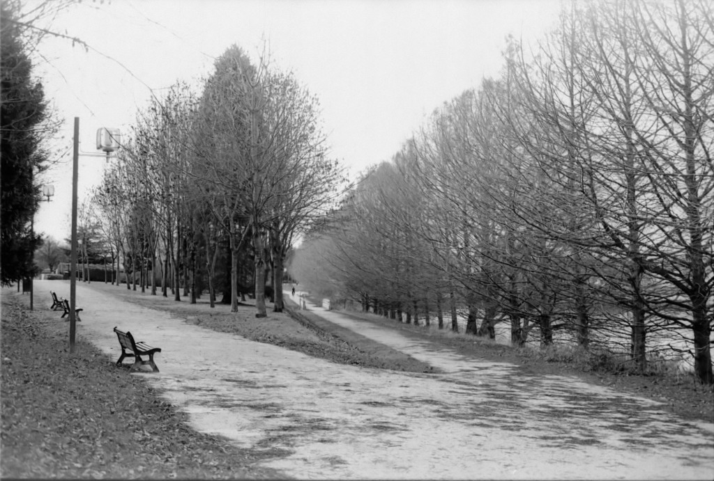 La zone blanchâtre verticale vient très certainement de l’émulsion elle-même. Il ne s’agit pas d’un flare ou d’un halo dus au soleil. Lognes – Janvier 2014 – Nikon F100 – Nikkor 50mm f/1.2 :