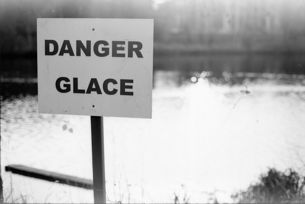 La zone blanchâtre verticale vient très certainement de l’émulsion elle-même. Il ne s’agit pas d’un flare ou d’un halo dus au soleil. Lognes – Janvier 2014 – Nikon F100 – Nikkor 50mm f/1.2 :